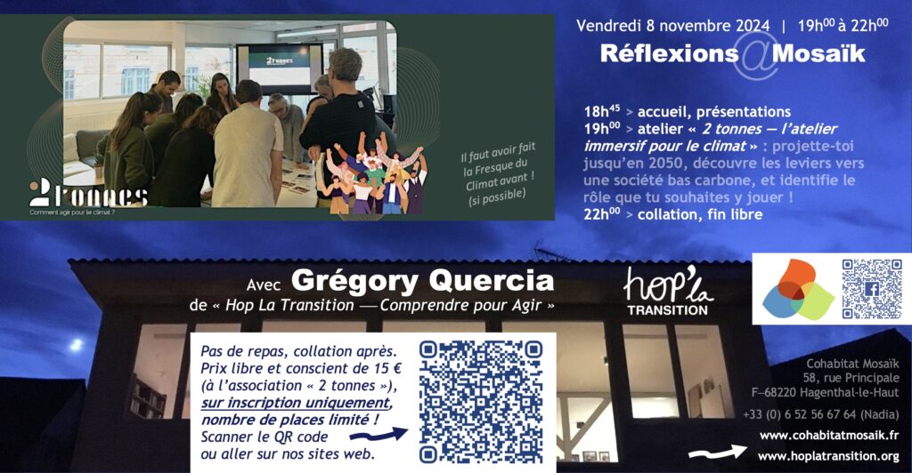 vendredi 8 novembre 2024, 19h00-22h00 avec Grégory Quercia, de Hop La Transition