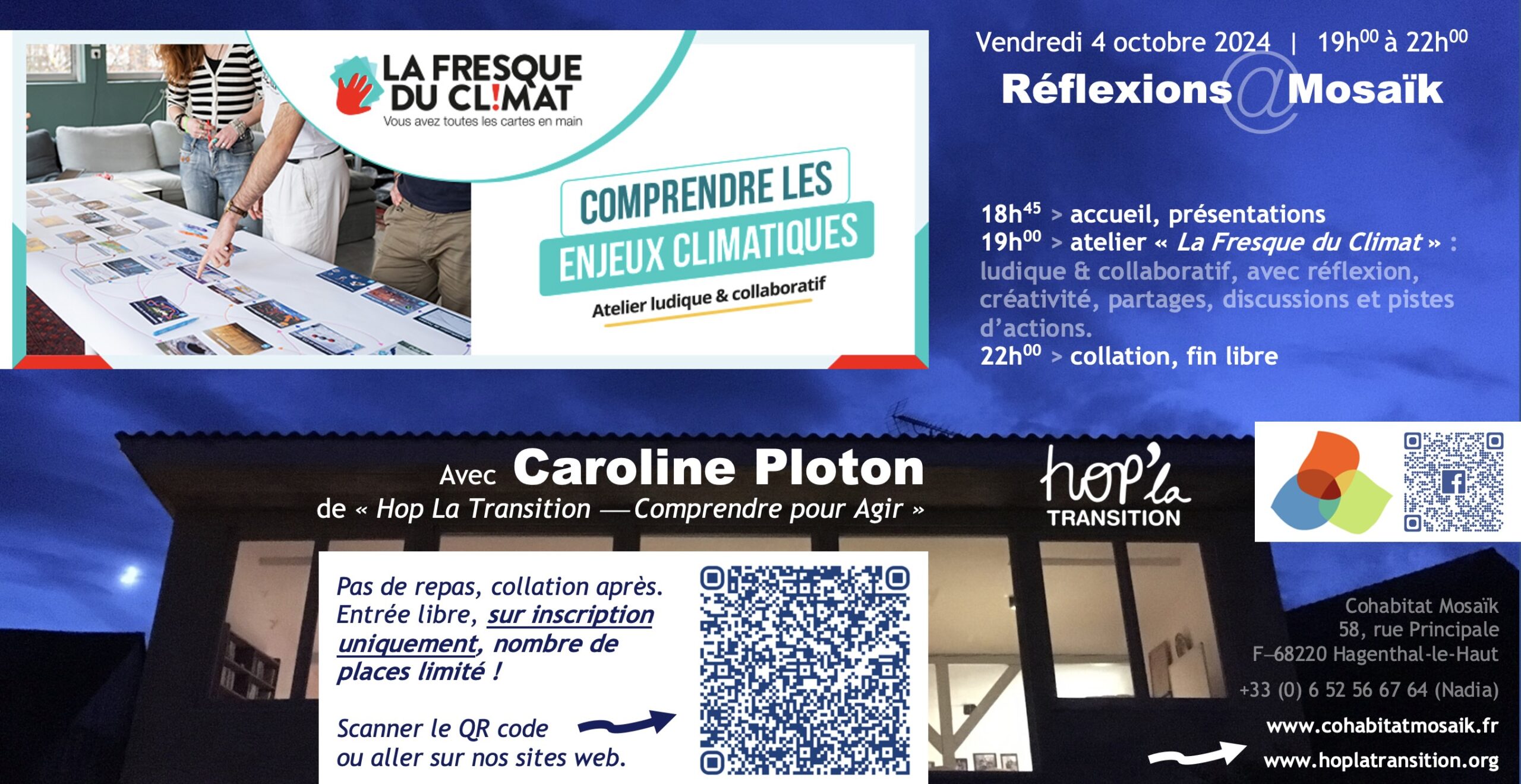 vendredi 4 octobre 2024, 19h00-22h00 avec Caroline Ploton, de Hop La Transition