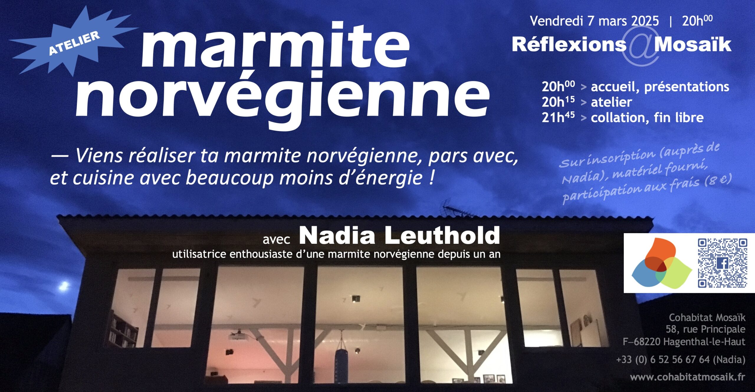 vendredi 7 mars 2025, 20h00 avec Nadia Leuthold utilisatrice enthousiaste d’une marmite norvégienne depuis un an !
